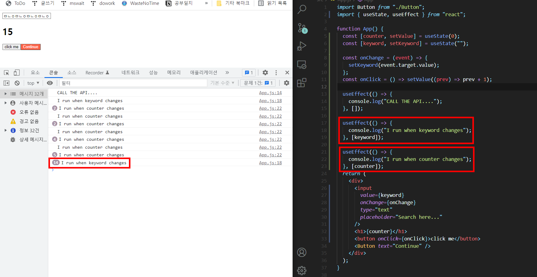 counter state의 변화에 관계없이 keyword state 에만 리랜더링 한다.