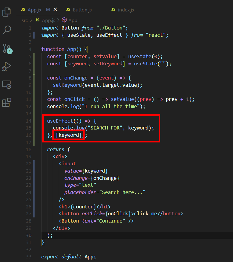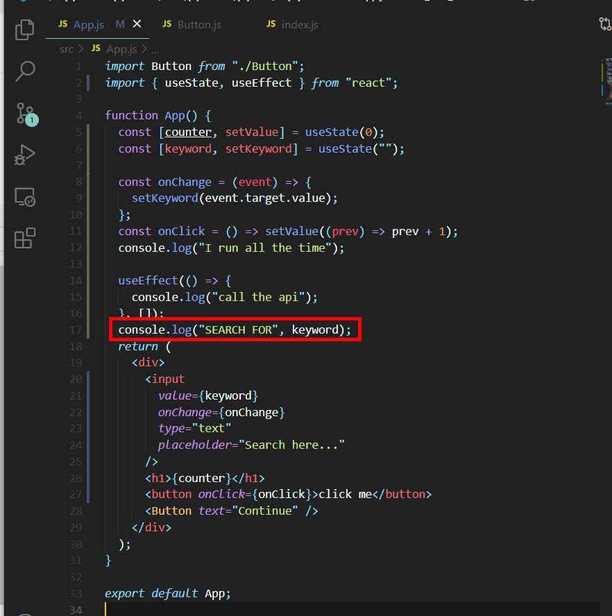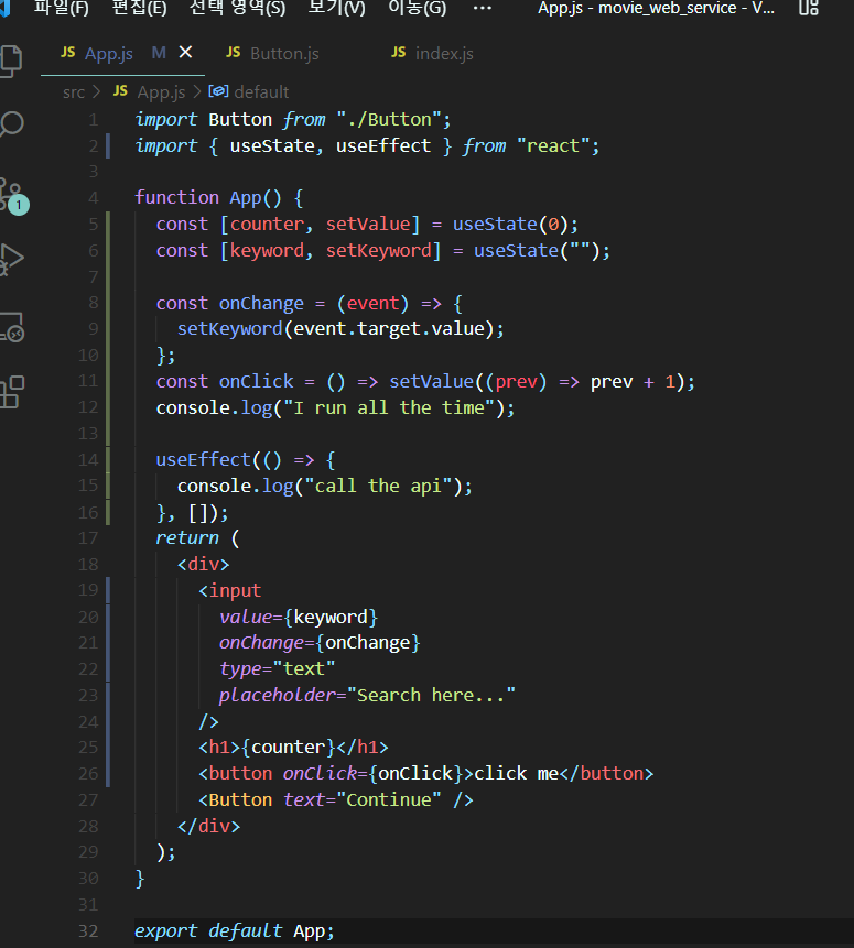 우리가 입력을 할때마다 state가 변경된다. 다행히도 useEffect가 있으니깐 이럴때 마다 API 반복적으로 호출되는 문제등을 막을 수 있다.