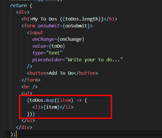 37줄 만에 to - do list를 작성할 수 있었다. Vanilla JavaScript 였다면 html, js 파일을 따로 하여야 했을텐데