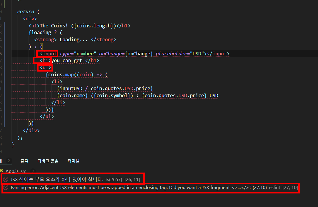 JSX 식에는 부모 요소가 하나 있어야 합니다.