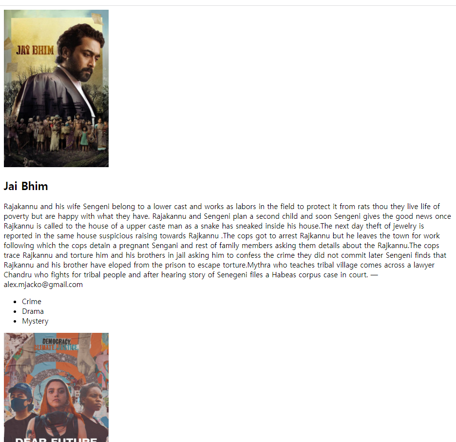 이중에서 genres는 또 배열이기 때문에 map 을 써주어야 했고, 동시에 고유한 키 값을 줘야 하기에 genres를 넣어줬다.(그렇게 되서 겹치는 경우는 없는 건가?)