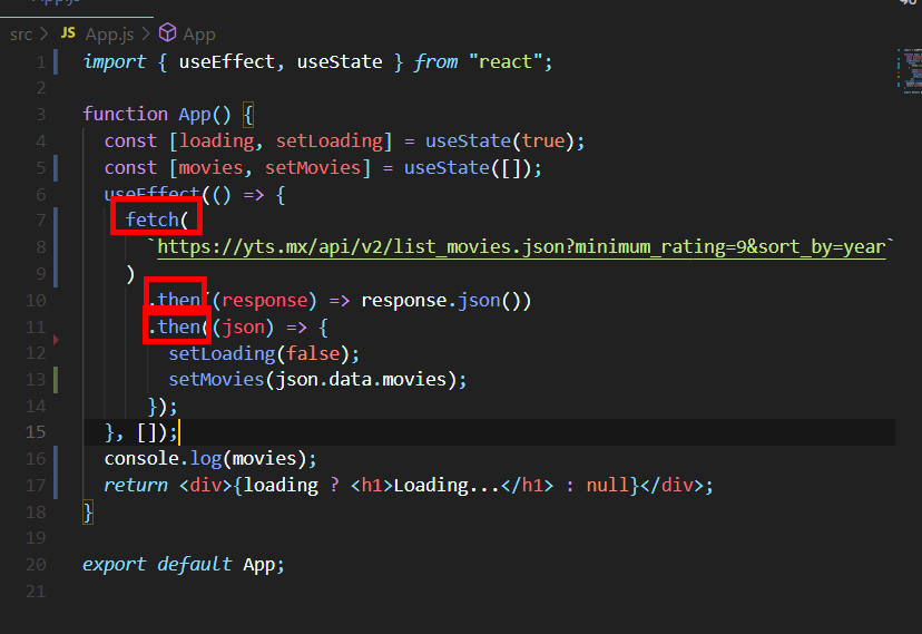setMovies 와 setLoading으로 각기다른 state지만 두번 수정해주었기에 랜더링도 2번 일어난 것이다.