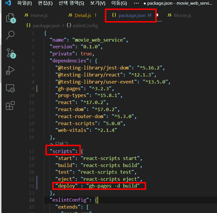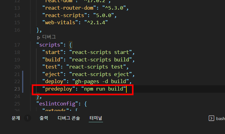 nodejs는 predeploy를 실행시킨다음에 deploy를 실행시킨다.