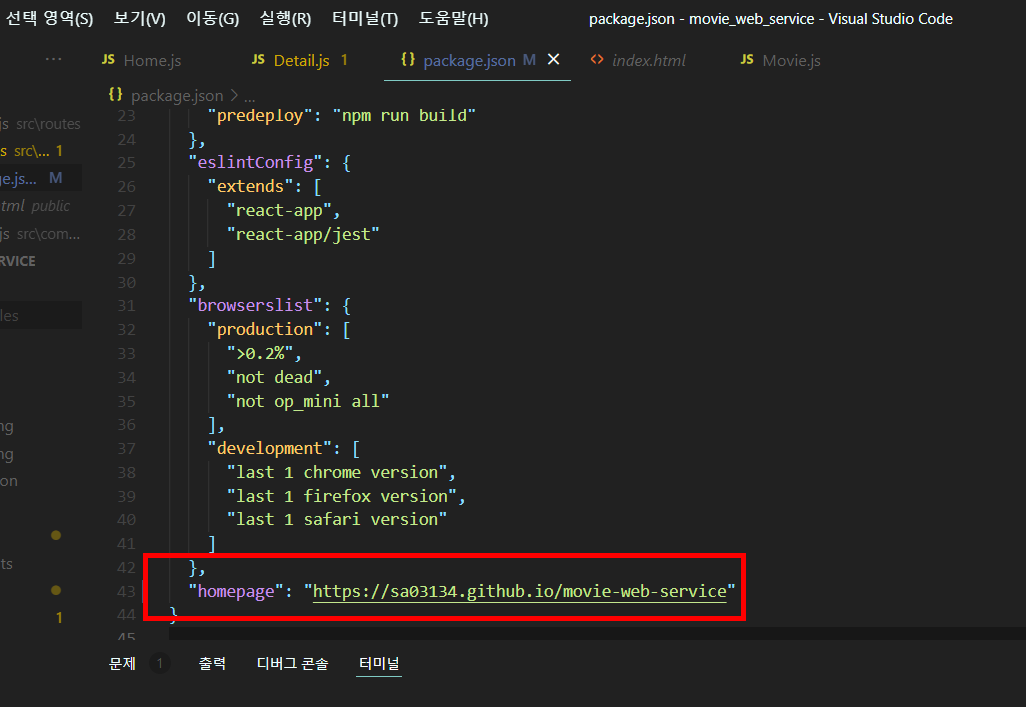 homepage: "https://<깃허브username>.github.io/<이 코드가 들어있는 깃허브 레포지토리명>"