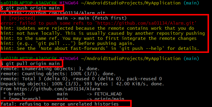 Git push가 안되는 경우 (fatal: refusing to merge unrelated histories)