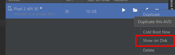 뭐 실행중이다 이런 말이 떠서 안드로이드 스튜디오를 종료시켜주고 다시 실행 하여 Wipe Data 를 실행하였더니 되었다.