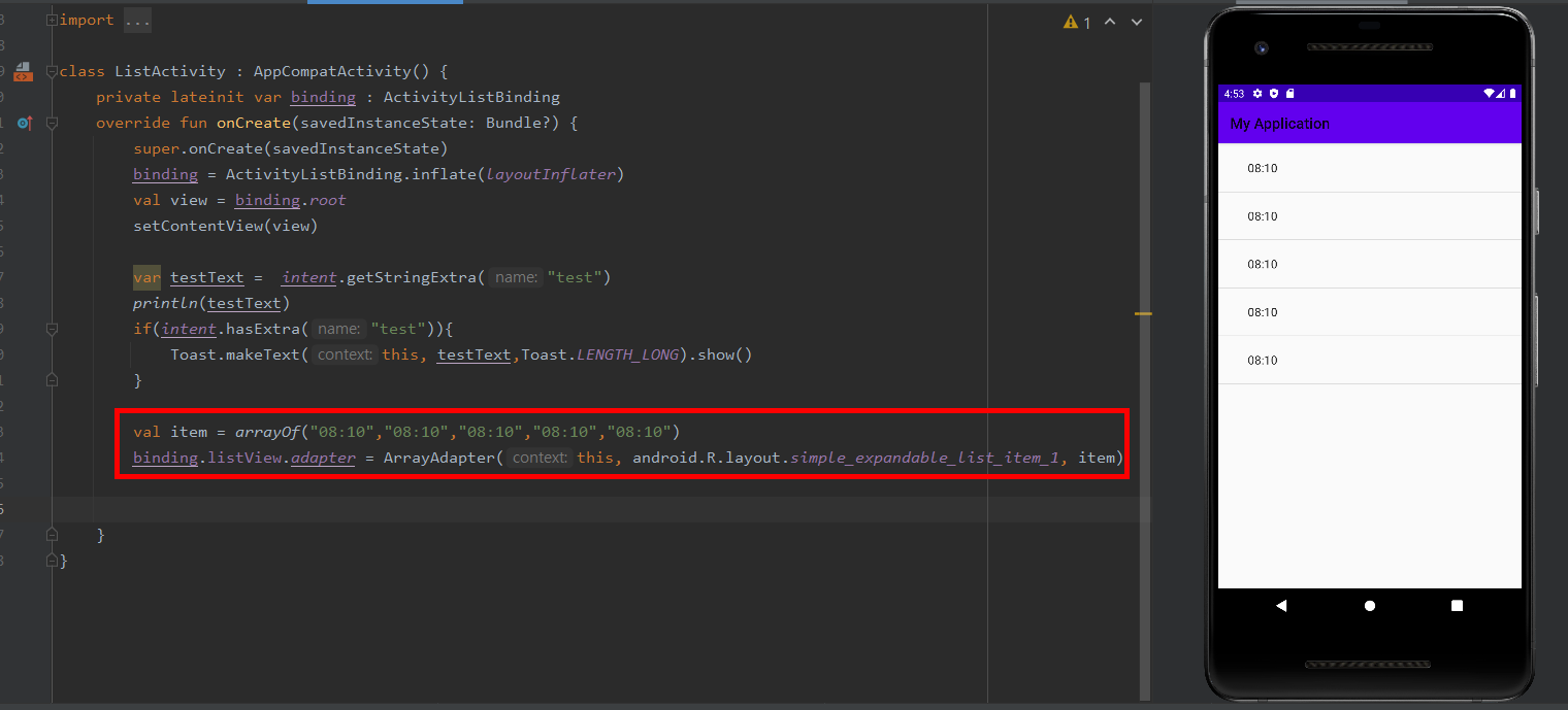 binding.listView.adapter = ArrayAdapter(this, android.R.layout.simple_expandable_list_item_1, item)