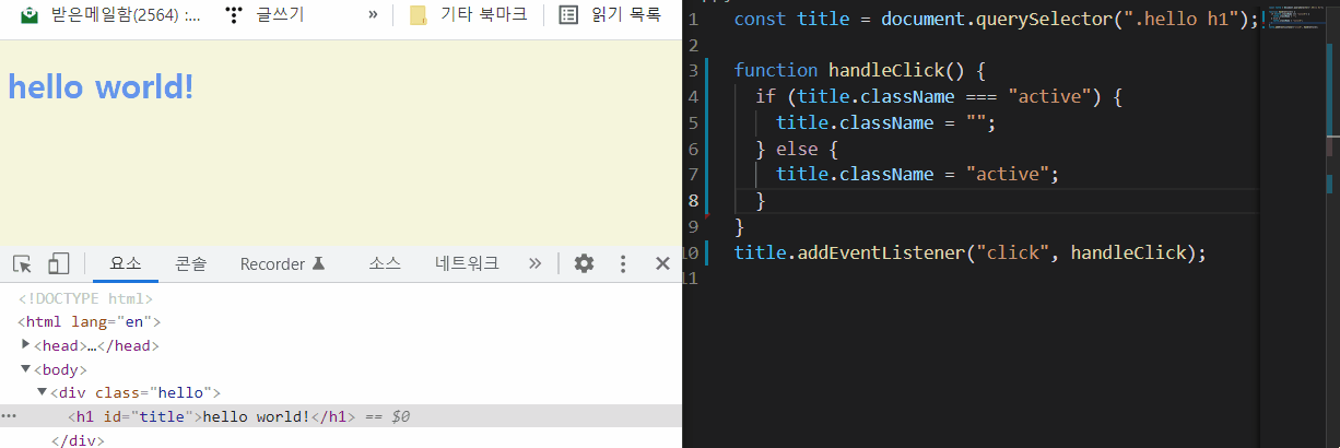 [JavaScript] Event Listener, 자바스크립트의 진짜 역할addEventListener() (0) | 2022.02.28 |