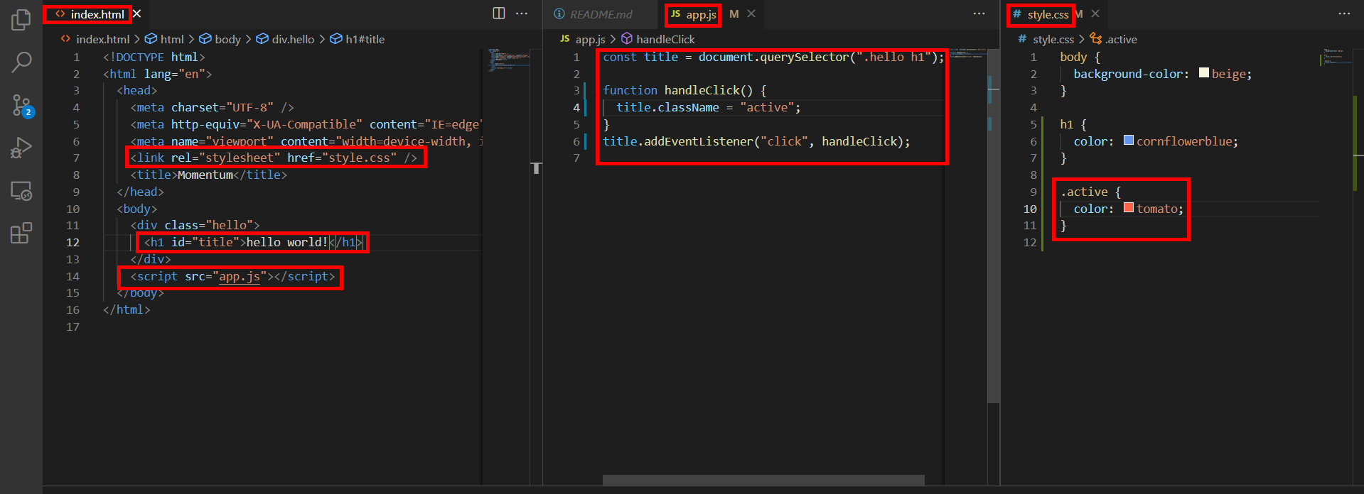 active 라는 클래스 이름은 raw value라고 하는 개발자가 정한 그저 이름일 뿐이다. CSS의 값과 HTML에서의 두번의 정확한 수정을 해야지만 정확하게 동작하게 되는 것이다.