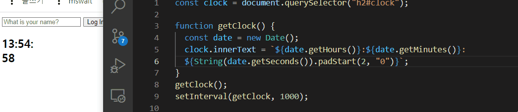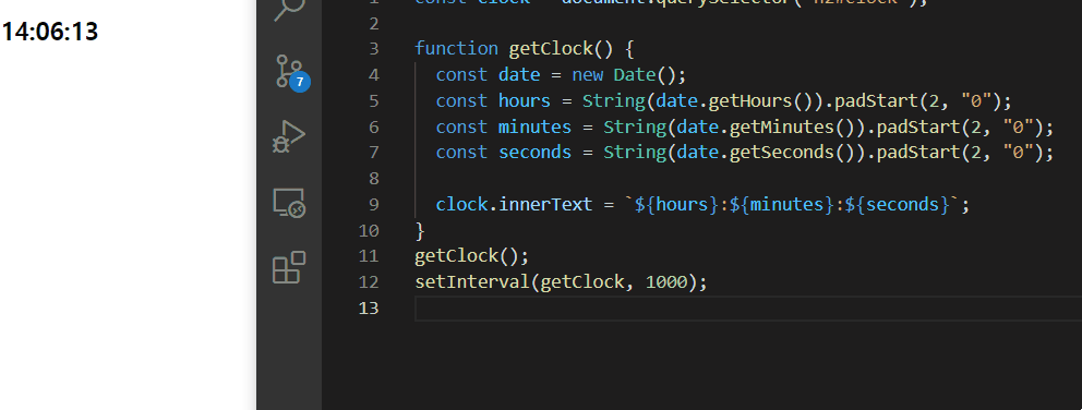 clock.innerText = `${date.getHours()}:${date.getMinutes()}:${date.getSeconds()}`;