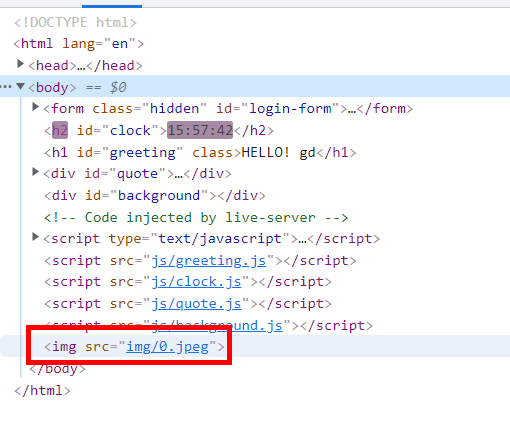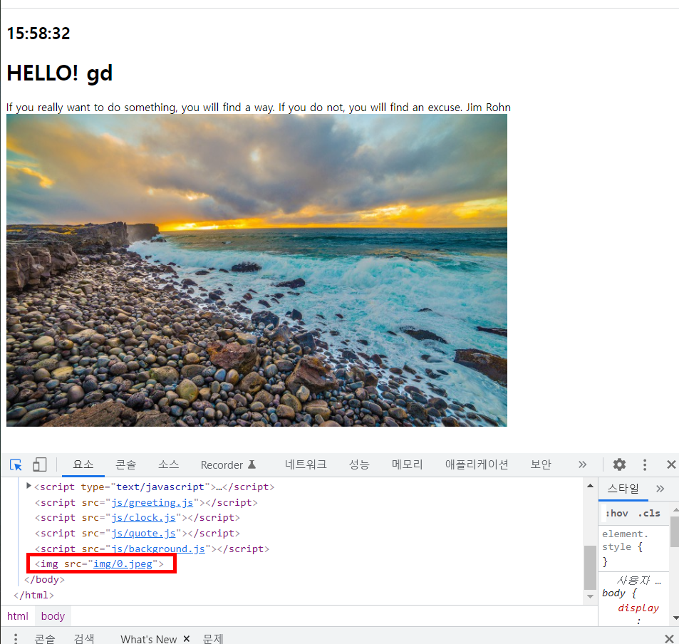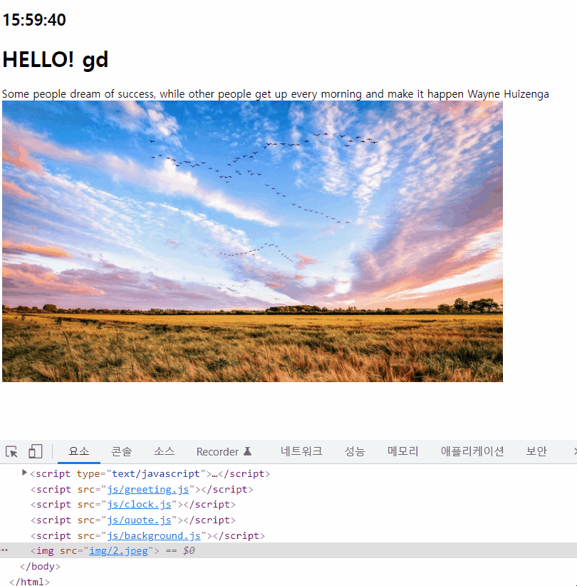 마지막으로 해줘야 하는 것은 html 의 body 내부에 이 bgImage 를 넣어줘야 한다는 것이다.