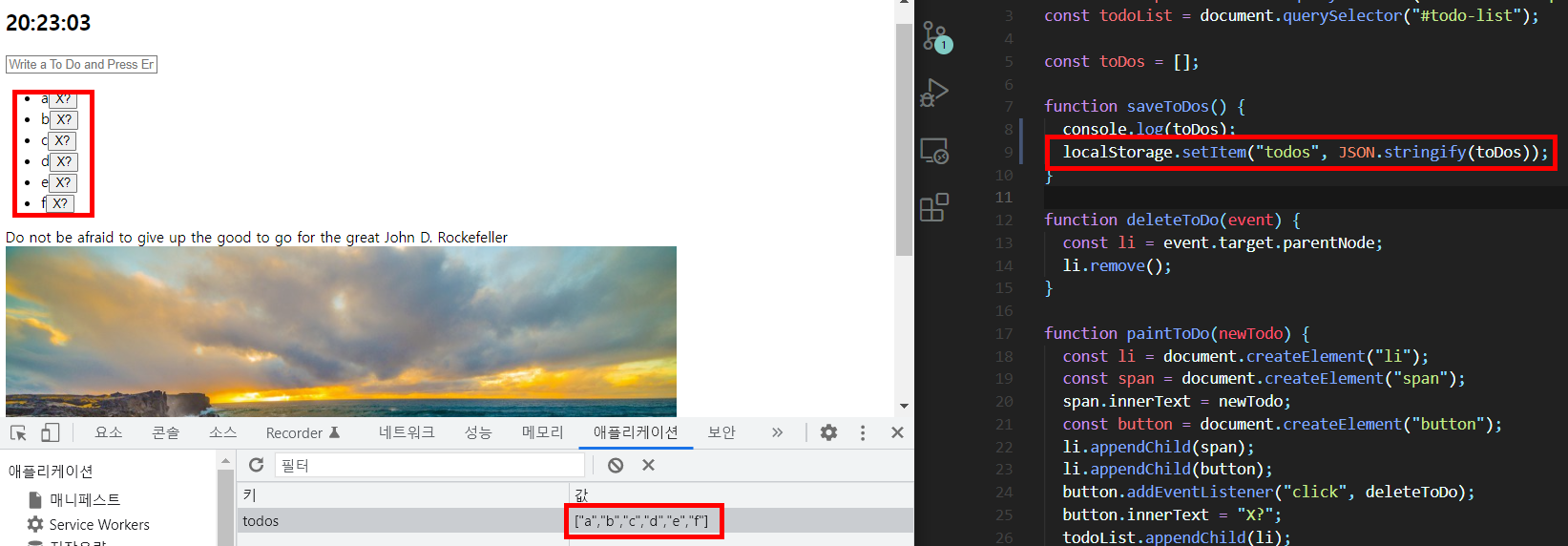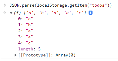 이를 JSON.stringify() 로 애시당초 배열 전체를 string으로 변환해주고 localStorage에 넣어주면?