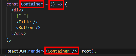 Container 도 arrow function형식으로 함수로 만들어주고 render 안에 형식을 JSX로 바꾸어 주자.