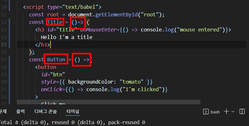 JSX 에서는 () => () 이다. 안그러면 오류가 난다.